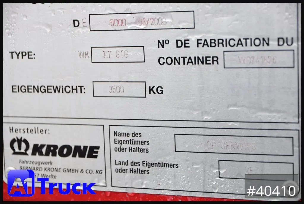 Krone Wechselbrücke 7,82, Zollplakette