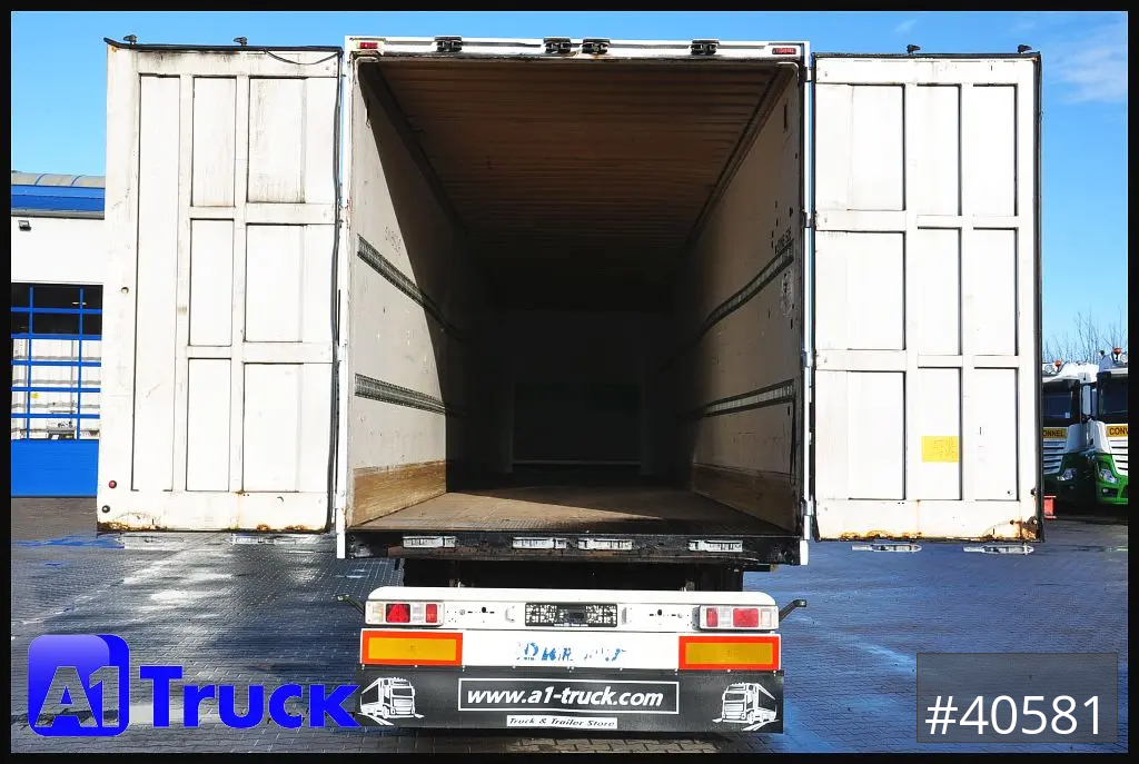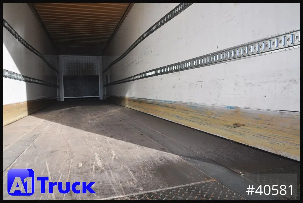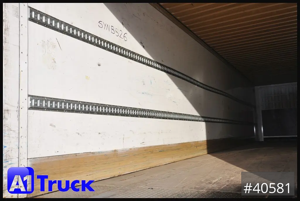 2 reihige Ladungssicherungschiene, Siebdruckboden 30mm bis zu 7000kg Staplerachslast, Seitenwände in Plywood AUsführung, 6 LED Deckenleuchten, Stapleranfahrschutz 250mm setilich hoch, COC vorhanden