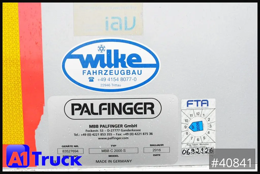 Fahrgestell Krone, Aufbau Wilke, Ladeboardwand: Palfinger MBB 2000 KL,Kühlaggregart: Carrier Vector 1950 MT, Diesel: 7178 Std, Elektro: 1689 BStd, Tridec Zwangslenkung, Temperaturschreiber, 3 Kammern, Kühlmaschine auf Funktion getestet, Auf Wunsch senden wir Ihnen ein Video und weitere Bilder