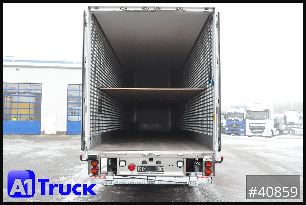 flexibler Doppelstock verstellbar mit Ratserprofil, Hartholzboden, isoliertes Dach, Koffer Innenbeleuchtung, Ladebordwand: Dhollandia 2000kg faltbar, Tridec Lenkung letzte Achse
