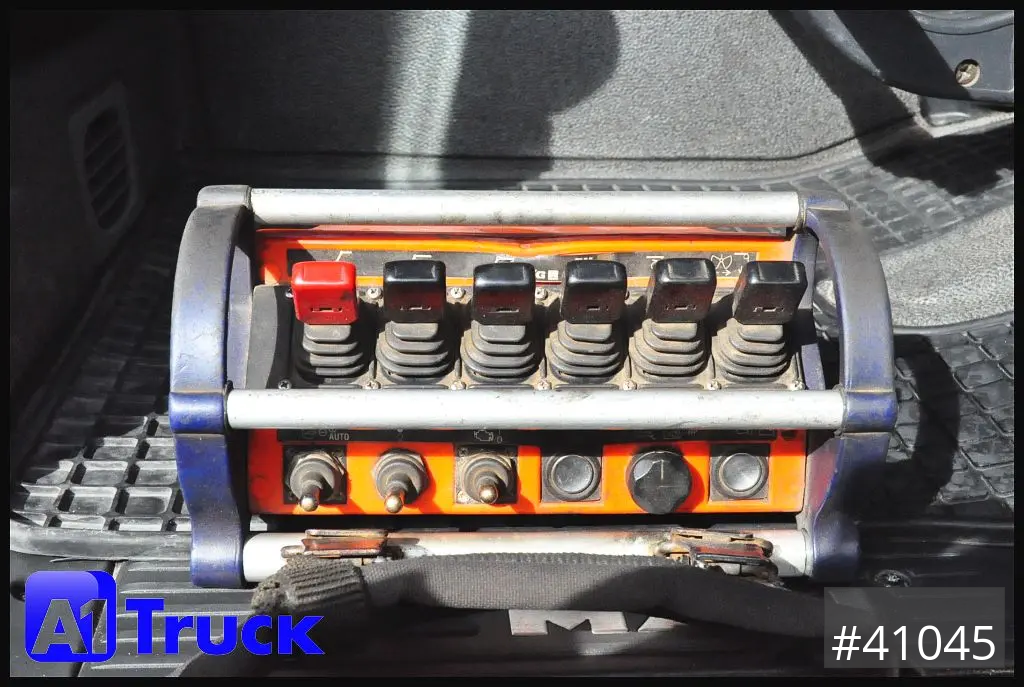 Kran: MKG, Typ: HLK 591 SHP, Funkfernsteuerung, 4-fach Abstützung, Seilwinde