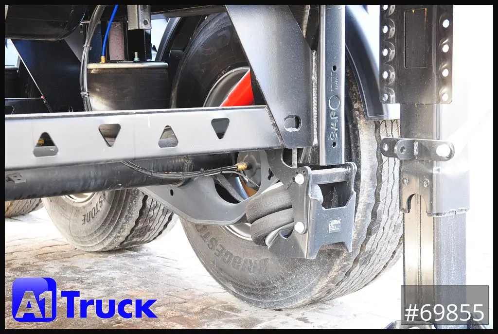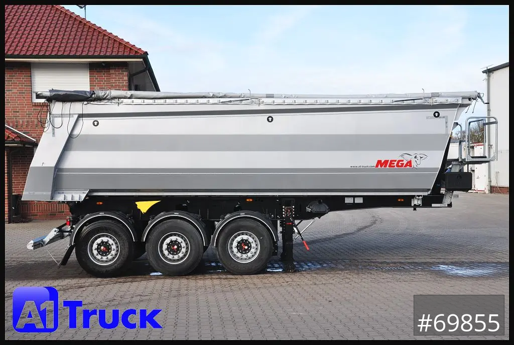 Hersteller Mega Stahlrundmulde, Inhalt 28m³, Hardox Liftachse, 1250mm Aufsattelhöhe, Pendelklappe, klappbarer Unterfahrschutz, SAF Achsen und Scheibenbremsen, Chassi Länge 7200mm, SAF Vollast Stützen, Bodenstärke 5mm, TPMS Reifendrucküberwachung, Bridgestone Reifen, 250bar Hyva Kippstempel, Wasserbehälter 30Ltr, Werkzeugkasten, Schaufel und Besen, Rollplane, Bedienstand, Vermietung möglich