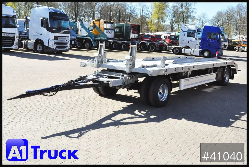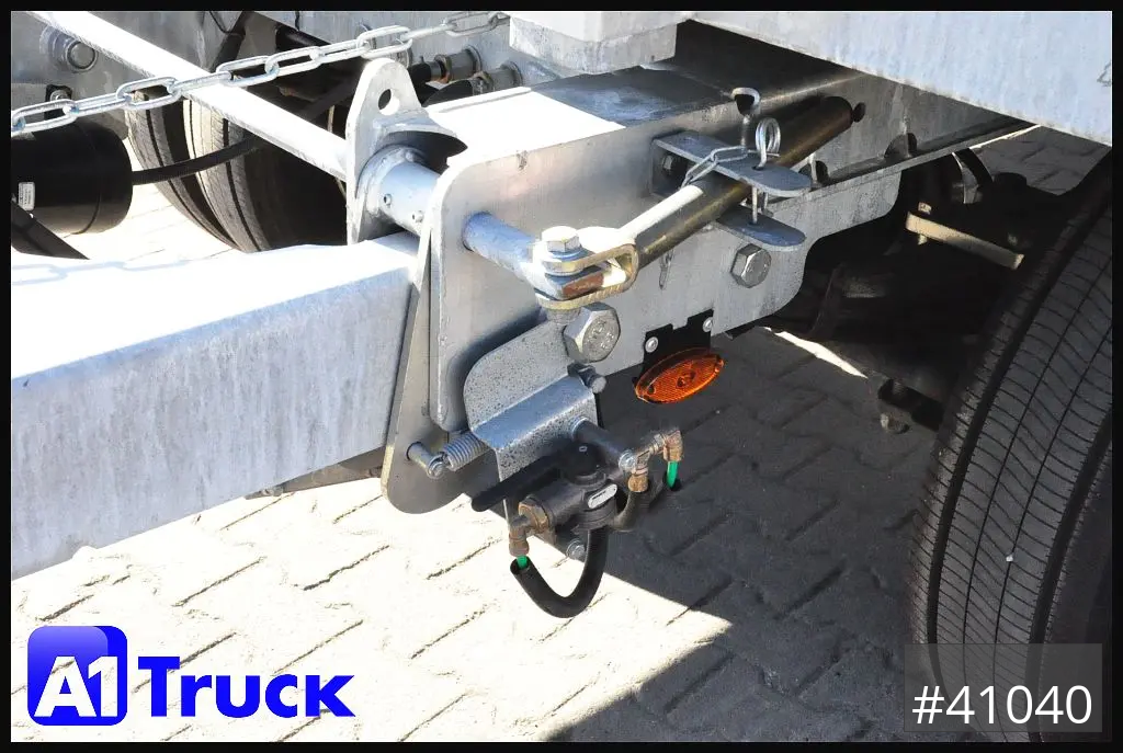 Aufnahme von Abroll- und Absetzbehälter, Abrollcontainer 5000-7000mm Länge, absenkbare Zugdeichsel, Staufach für Anlegerampen, Außenmaß, Fahrhöhe 1020mm, Plattformlänge ca 7000mm, pneumatische Verriegelung, Luftanschluss duomatic