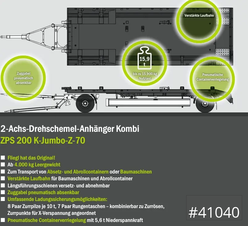 Fliegl Anhänger - Tieflader ZPS 200 K HPA Kombi Abroll- Abset- Tieflader
