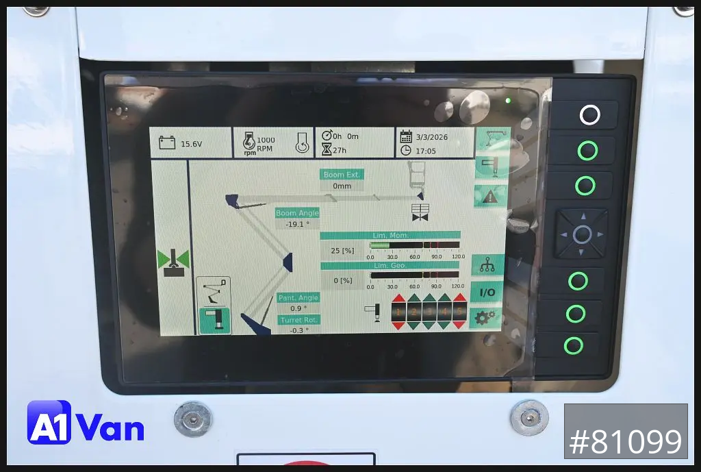 Oil & Steel Snake 24, 3 Sitze, Korb- und Flursteuerung, Arbeitshöhe: 235 m, Standhöhe: 215 m, Tragfähigkeit Plattform: 250 kg, Seitliche Reichweite: 130 m, Arbeitskorb: 1400 x 700 x 1100 mm, Schwenkbereich: 400°, Korbdrehung: +/- 90° , Abstützung: H-Abstützungzul Gesamtgewicht: 3490 kg